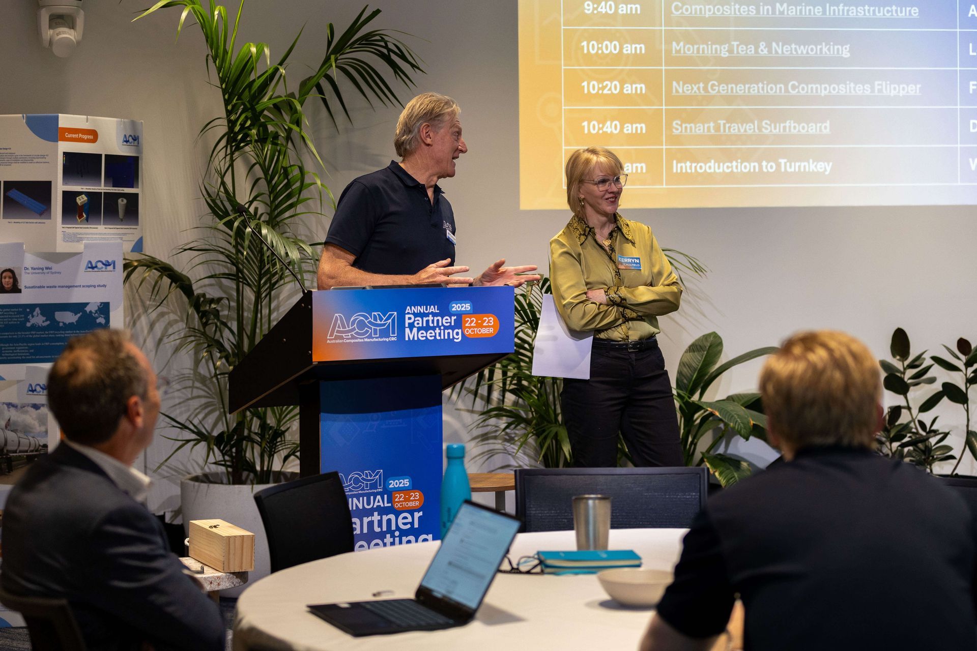 - ACM CRC’s ‘Next Five Years’ Strategy, which emphasised a pivot to industry-led research projects, greater collaboration between partners, clearer utilisation pathways, stronger governance, and enhanced workforce development (delivered by Dr Stephen van Duin, R&D Director, ACM CRC).