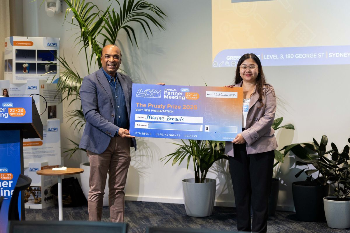 HDR students were also invited to present their work, with Sharine Bendulo of Deakin University announced as the inaugural Prusty Prize winner. The Prize, which is named after ACM CRC’s foundation Director of Research, Scientia Professor Gangadhara Prusty, will be awarded each year for the “Best HDR Presentation by popular vote” at the Partner Meeting. We congratulate Ms Bendulo as being the Prize’s inaugural recipient.