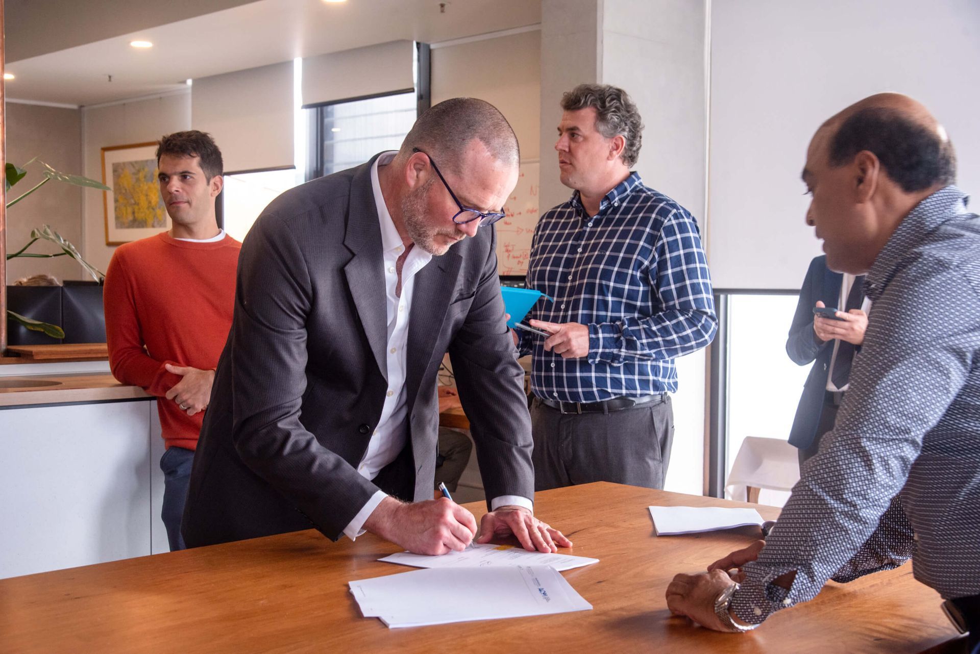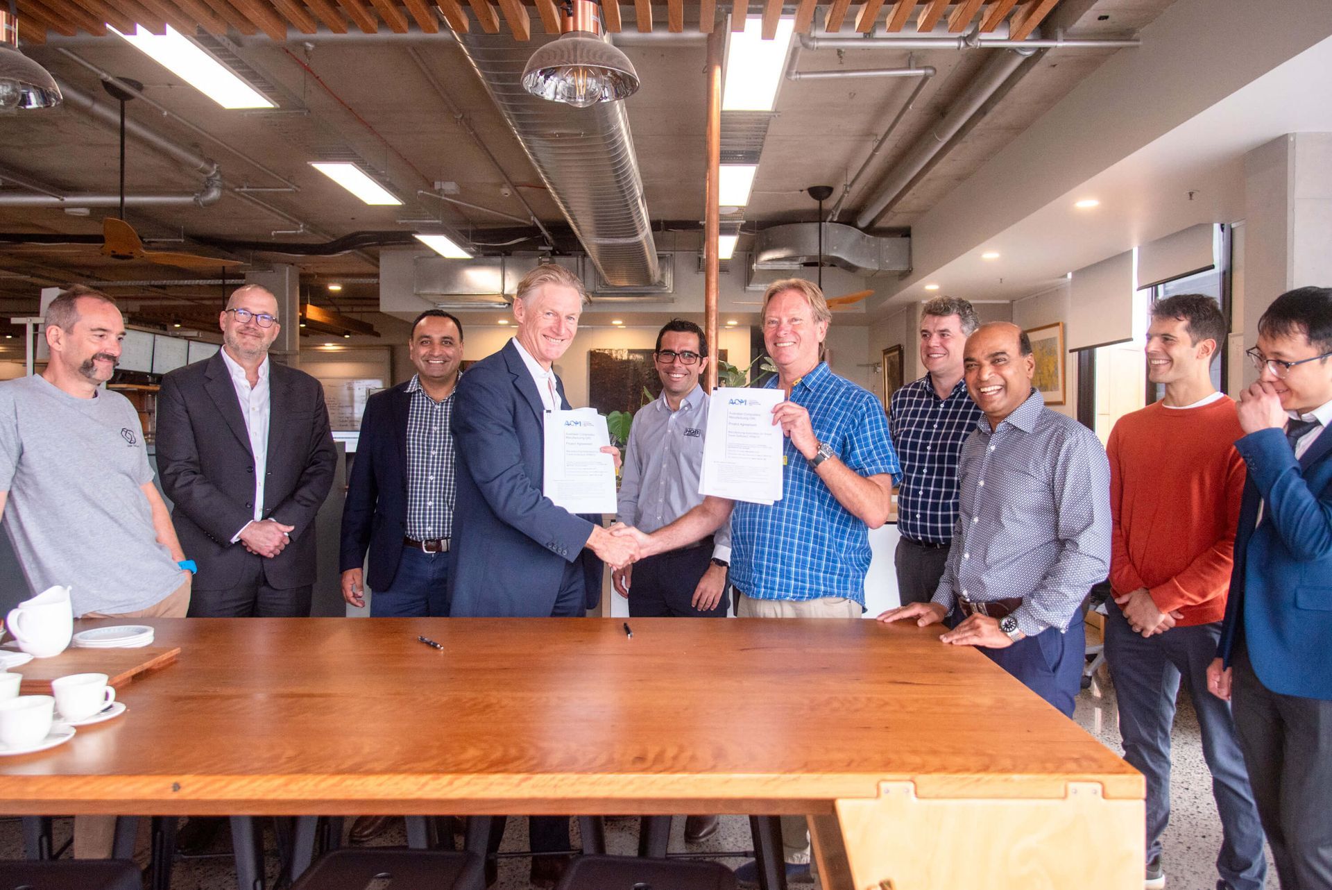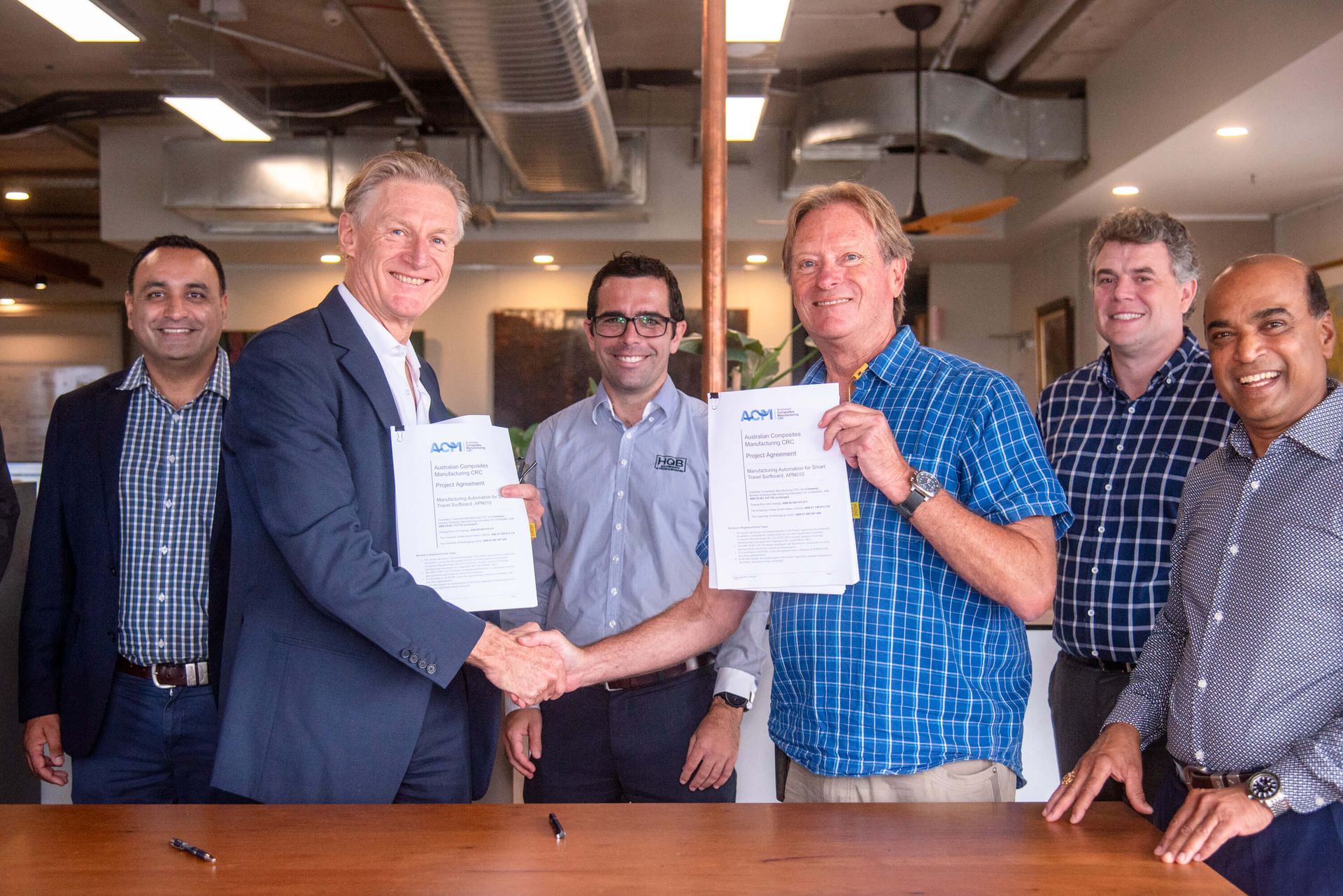 On Tuesday 23 April 2024, Mr Gowing was joined at his Harbour Drive office by Paul Amos, Mayor of Coffs Harbour, Shadow Minister for Tourism, Gurmesh Singh MP, ACM CRC’s Dr Steve Gower (CEO), Professor David Currow (Deputy Vice-Chancellor - Research and Sustainable Future, UOW) and Professor Ganga Prusty (Director of Research, ACM CRC), to undergo a contract signing ceremony that made the project official.